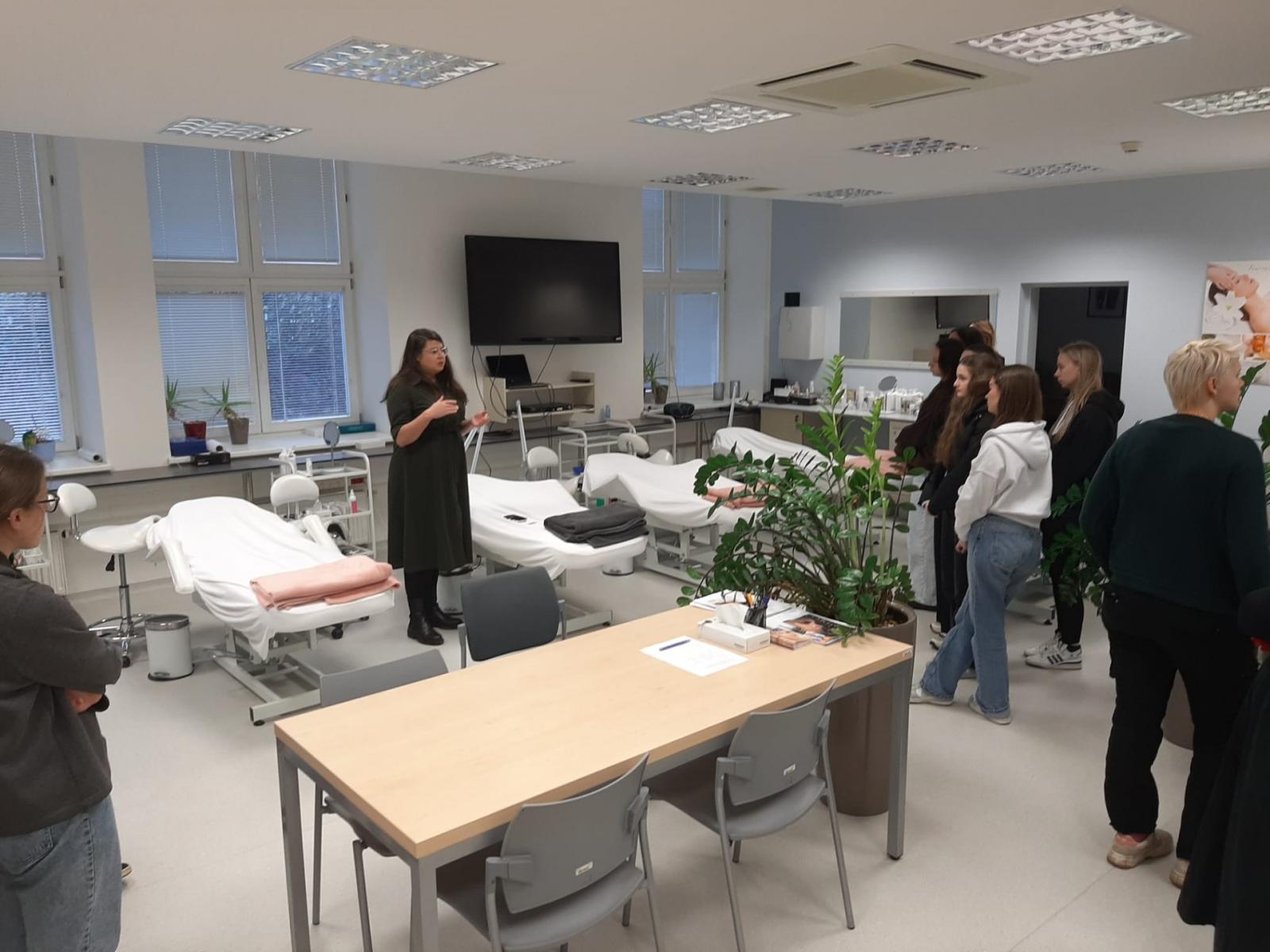 Dne 11. února 2026 měly žákyně čtvrtého ročníku obor Kosmetické služby možnost nahlédnout do univerzitního prostředí Fakulty technologické UTB ve Zlíně. Během hodinové exkurze na Katedře biomateriálů a kosmetiky se seznámily s moderními laboratořemi, zázemím výuky i aktuálními trendy v oblasti vývoje kosmetických přípravků.