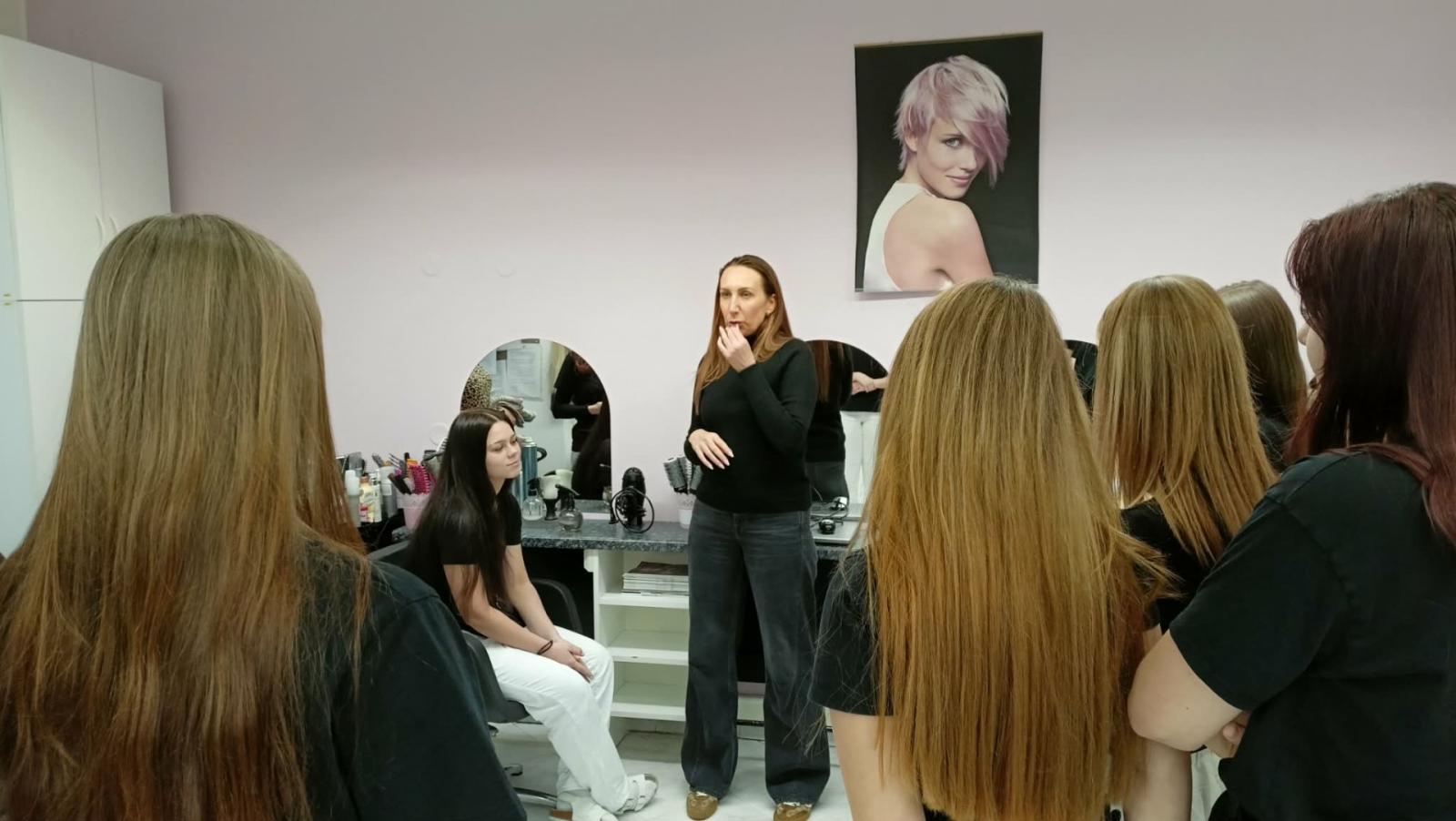Od pondělí 9. února probíhá na našich kadeřnických provozovnách série odborných školení, kterou pro naše žáky připravila firma MJC. Školení probíhají postupně na všech pracovištích – jako první se zapojila provozovna ve Vsetíně, následovala provozovna Kroměříž, zítra pokračujeme ve Vizovicích. Příští týden se školení uskuteční také na provozovnách kadeřnictví ve Zlíně – Jižních Svazích, na Penzionu a celou sérii zakončí provozovna v Otrokovicích.
