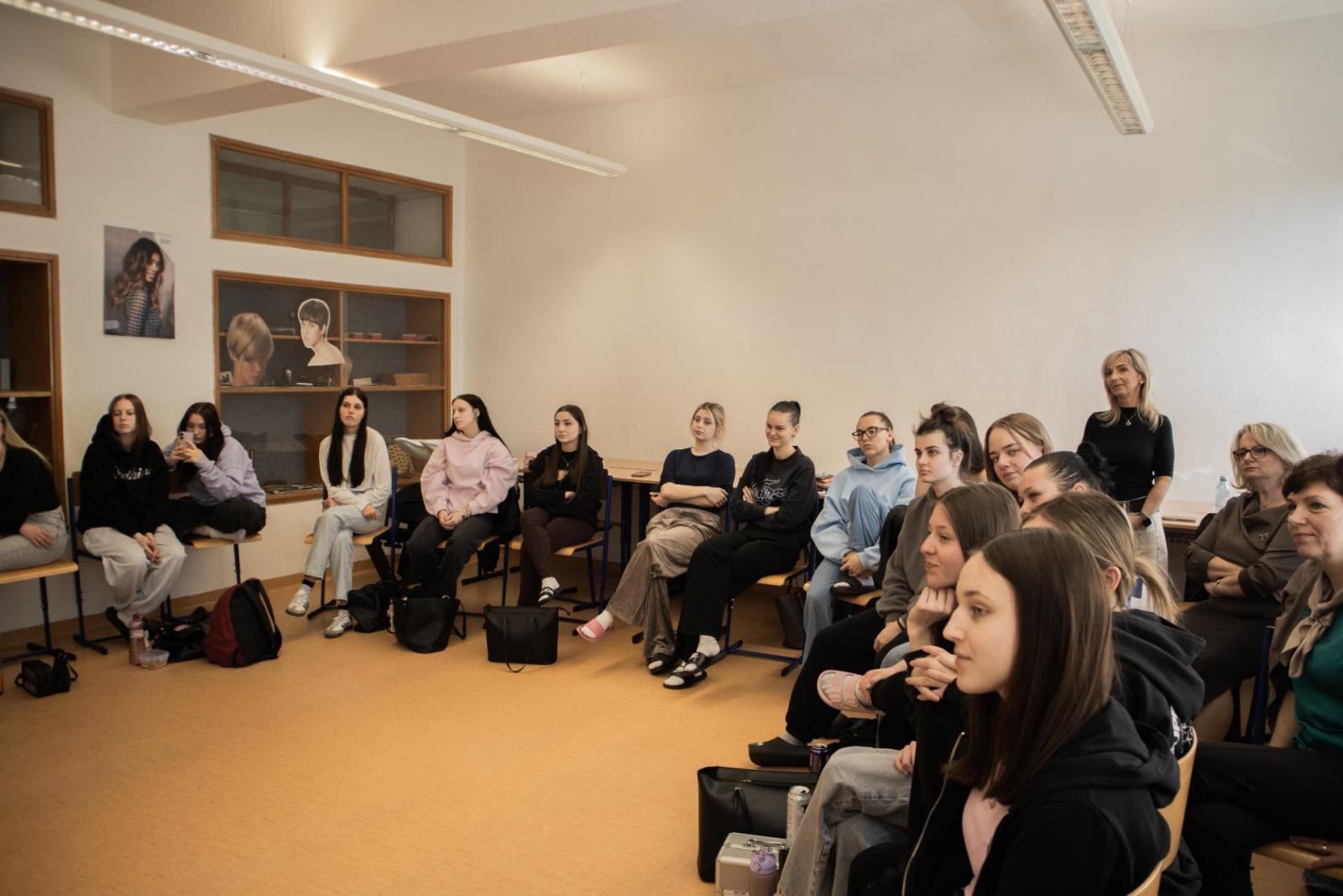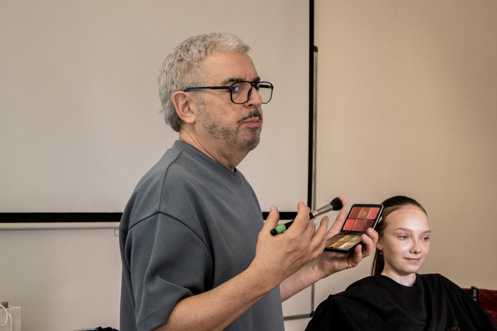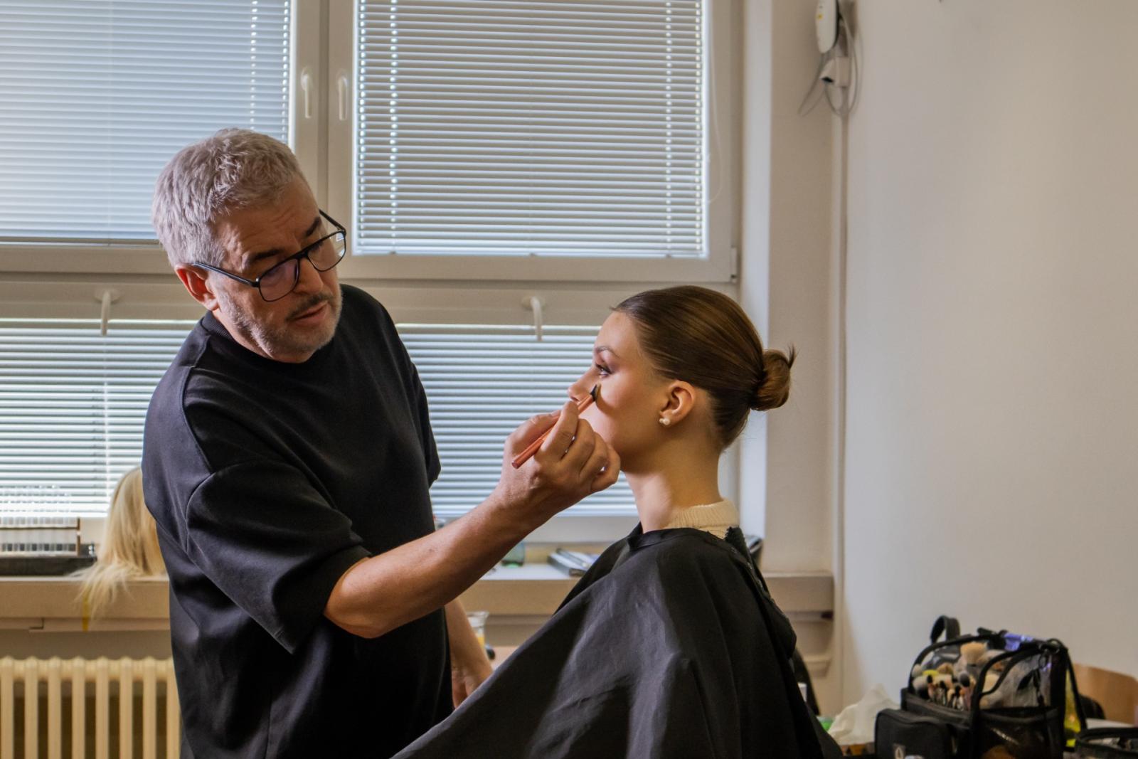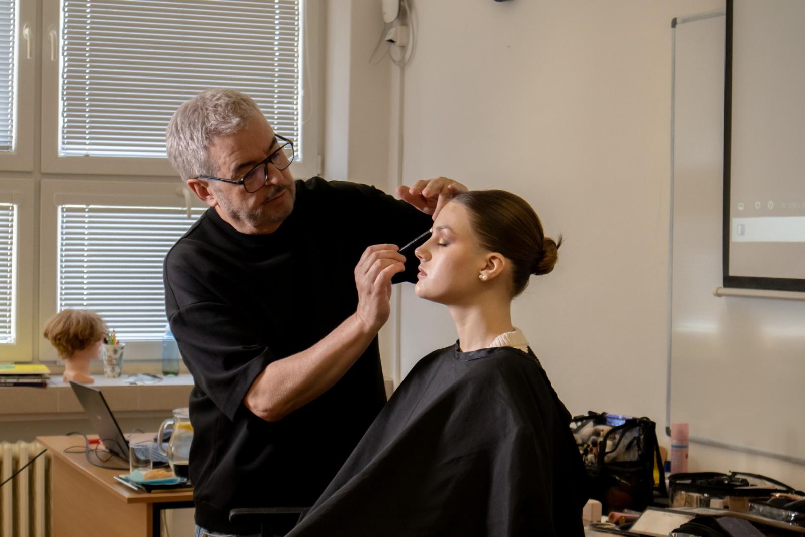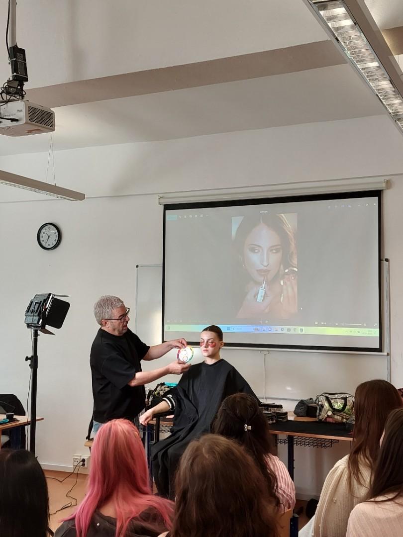 Pan Bauer nás nechal nahlédnou i pod pokličku své profese, předal nám své zkušenosti z práce pro film, televizi a módní časopisy. Jeden z našich nejlepších make-up artistů se našim kosmetičkám snažil přiblížit, co je čeká, pokud se budou této profesi v budoucnu věnovat a svým nadšením pro vizážistiku je motivoval pro jejich další profesní rozvoj.