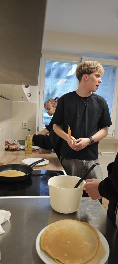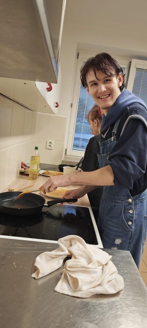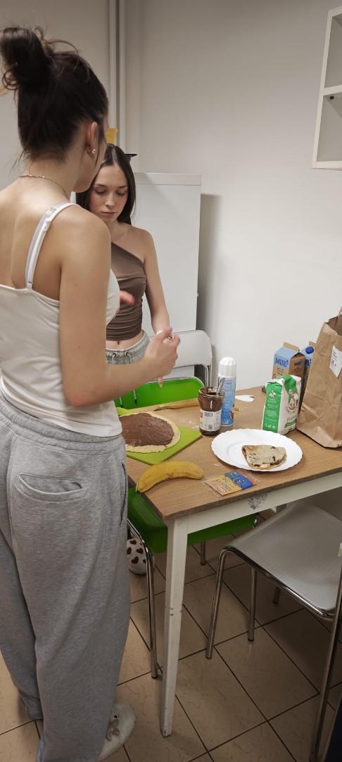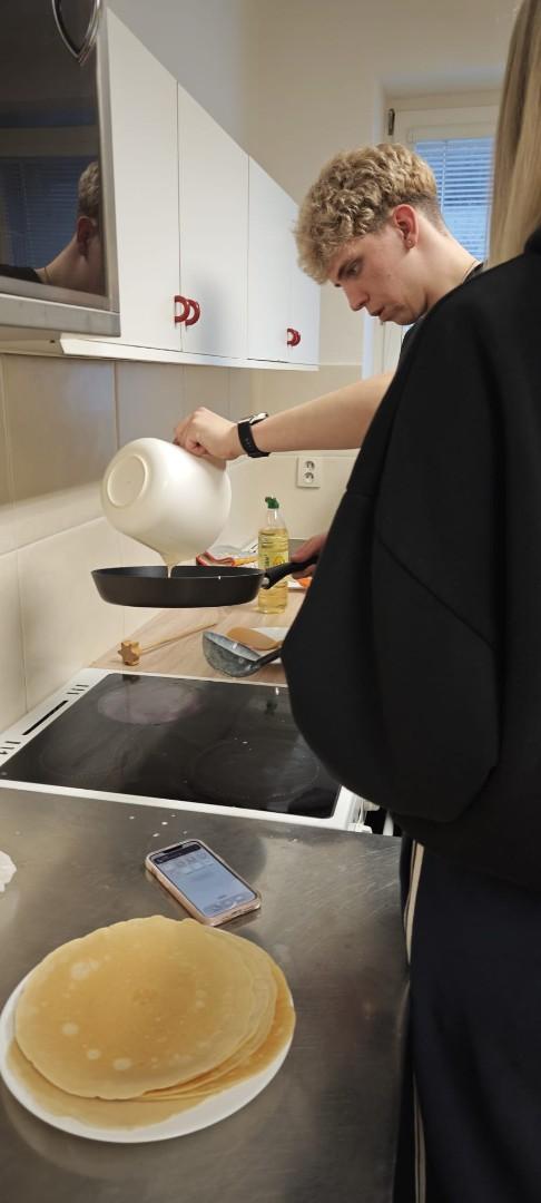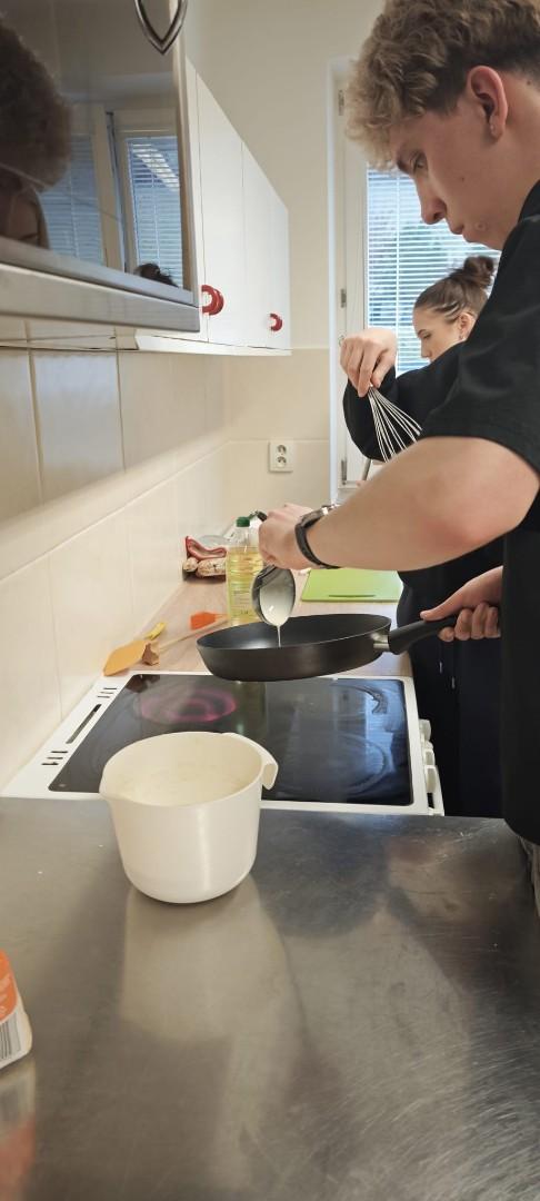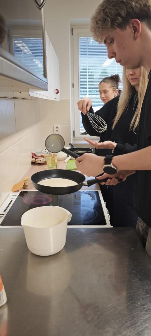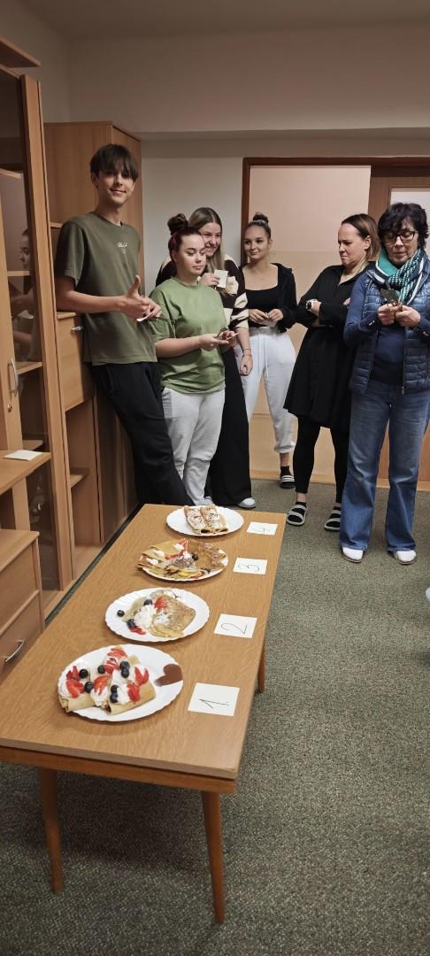 V domově mládeže se ve středu odpoledne konala již tradiční soutěž O nejlepší palačinku, kterou každoročně organizuje kroužek vaření. Do soutěže se zapojili žáci se svými originálními recepty. Přísná porota složená z žáků i vychovatelek hodnotila jednotlivé palačinky nejen podle chuti, ale také podle estetiky a originality zdobení. Fantazii se meze nekladly – zdobilo se džemem, nutellou, šlehačkou, čokoládou, mangem, jahodami a borůvkami. Celá akce se nesla ve skvělé atmosféře a všechny palačinky byly vynikající! Děkujeme všem soutěžícím za jejich nadšení a kreativitu a těšíme se na další společné akce!