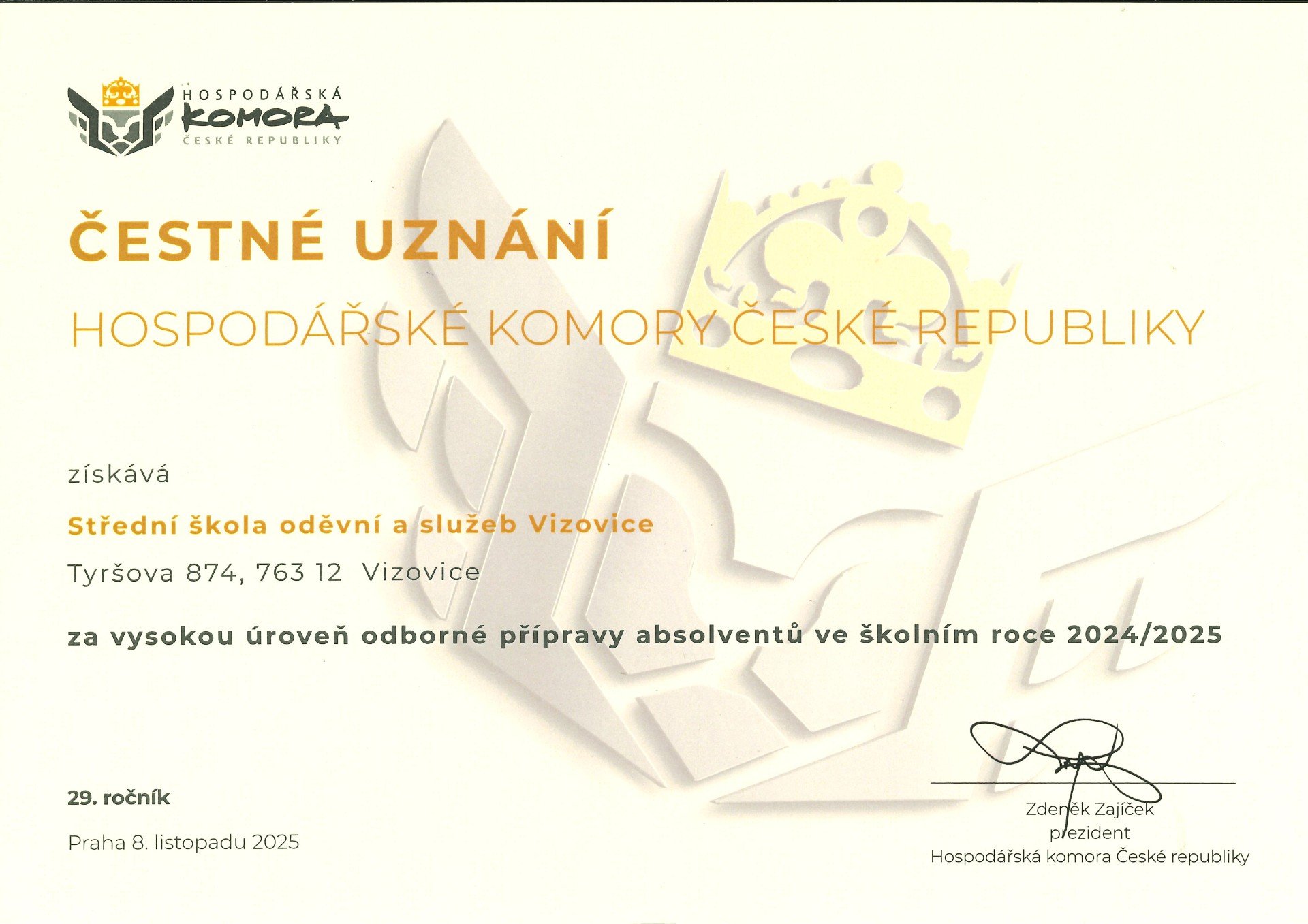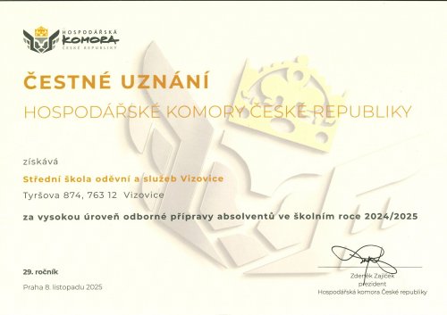 08.11.2025 Škola byla oceněna Hospodářskou komorou ČR